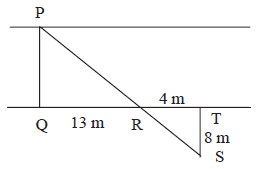 Gambar di bawah menunjukkan △ PQR dengan PS ⊥ QR. Bila panjang QR = 16 cm dan SQ = 9 cm, berapakah panjang PQ?